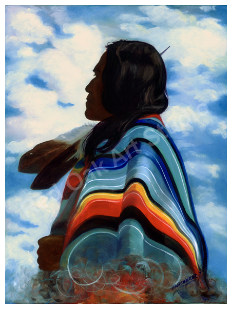 Newest oil painting of a Full blood Cherokee. Original oil painting sized 18″ X 24″. Indeed, soul stirring to gaze upon this mystical profile of our nations past. Original oil framed in 3″ black satin finished frame. Very striking!