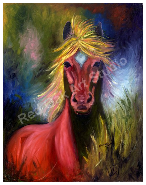 Painted with real love of horseflesh and an understanding of their fiery nature. Wild with color and energy.
