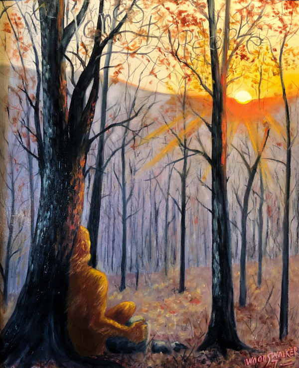 This Painting entitled "Cherokee NC" Was painted from a scene in Cherokee North Carolina. Sun drenched forests sends chills of inspiration. Notice hidden image of Cherokee presence.